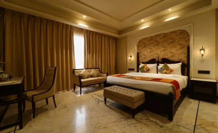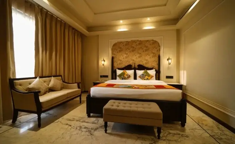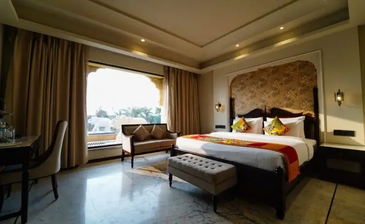Our classic rooms are a perfect blend of heritage style and modern conveniences with a mesmerizing view of nature, naturally lit and covered with a traditional color palette. Painted in a natural palette & vibrant touches of color, the spacious interiors of our classic room include a king-sized bed with views of a sun-dappled Aravalis. The room provides a uniquely intimate atmosphere that makes you feel like your own home in Pushkar. The room is spread across 284 sq. ft., elegantly furnished with spectacular furniture and decor. Our bathroom is equipped with all essential amenities. Uninterrupted Aravali views can be best enjoyed from a cushioned sofa window seat.